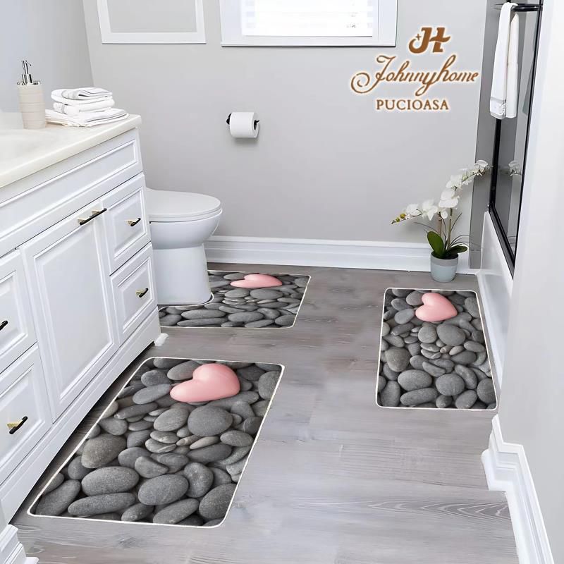 Covorase de baie, 3 piese, 3D, Antiderapante , CBA02