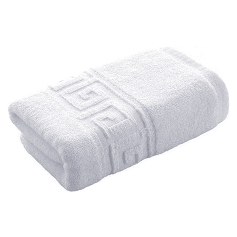 Prosoape albe Hotel, model Greek Border realizate cu fir dublu rasucit din fibra naturala din bumbac 100%. Au putere ridicata de absorbtie datorita grosimii de 550gsm .